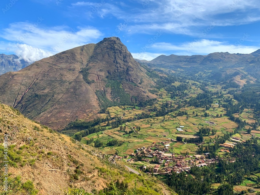 Peru Sacred valley Urubamba landscape with mountains and clouds.