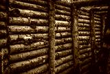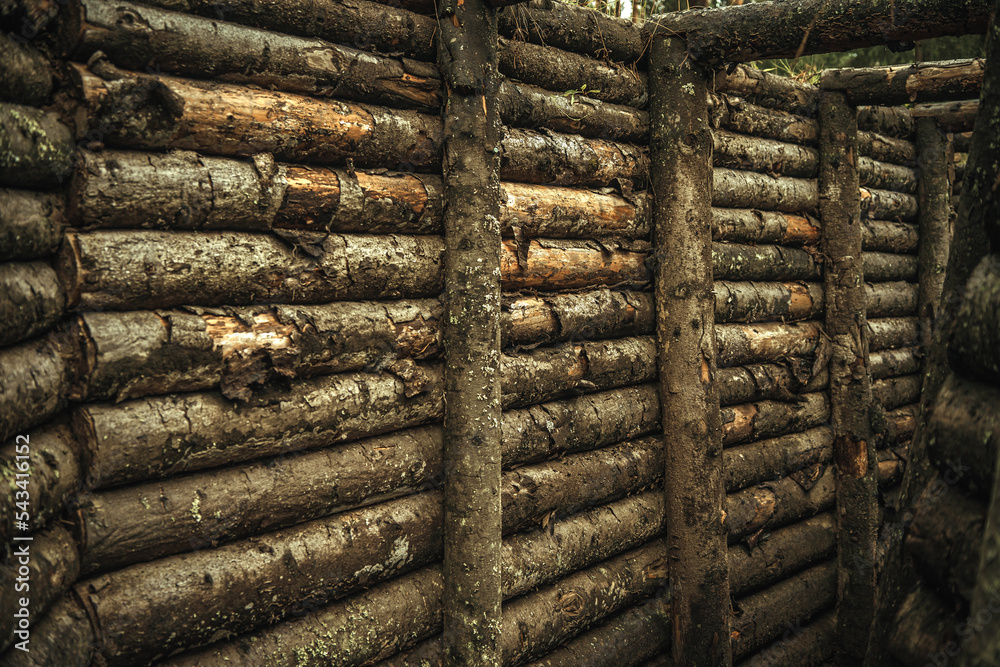 Covering the walls of the trench with a wooden beam. A fortification made of logs.
