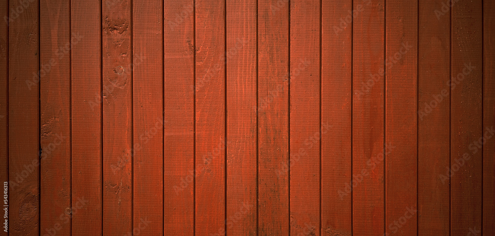 Red wooden background for text. Background of vertical boards painted with rowan paint. Red siding on the wall.