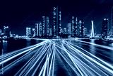 Tokyo Yakata bune bumboat light trail at Sumida river in Tokyo, Japan.
