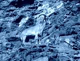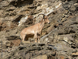 Barbary sheep (Ammotragus lervia) standing on a rock wall