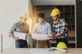 Successful home renovation describes and examines newly built and renovated construction holding large house blueprints.