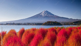 コキア の紅葉と富士山 絶景 秋 河口湖