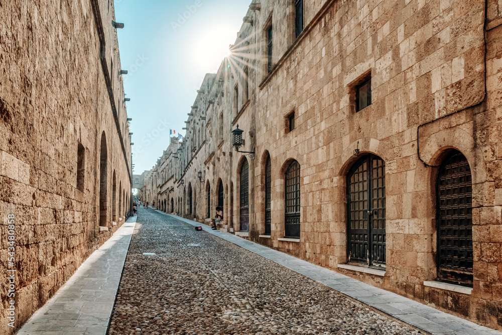 Medieval Street of the Knights called Ippoton in Old town of Rhodes city in Rhodes island, Greece