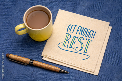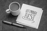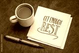 Get enough rest - handwriting on a napkin with a cup of coffee, relax and destress