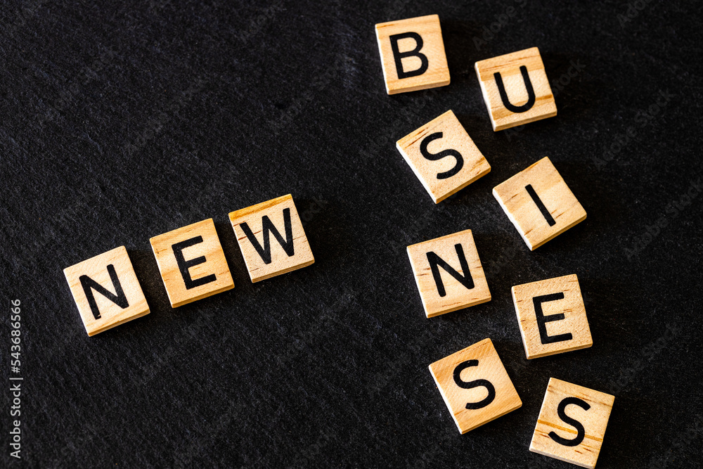 New business, Positive concept of starting a new business venture based on previous experience, Slogan written on wooden blocks