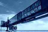 Jet bridge at the airport is brought to a large passenger plane