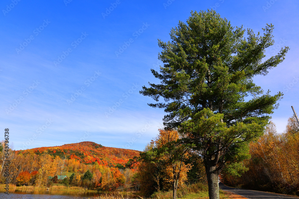 North america fall landscape eastern townships Bromont Quebec province Canada