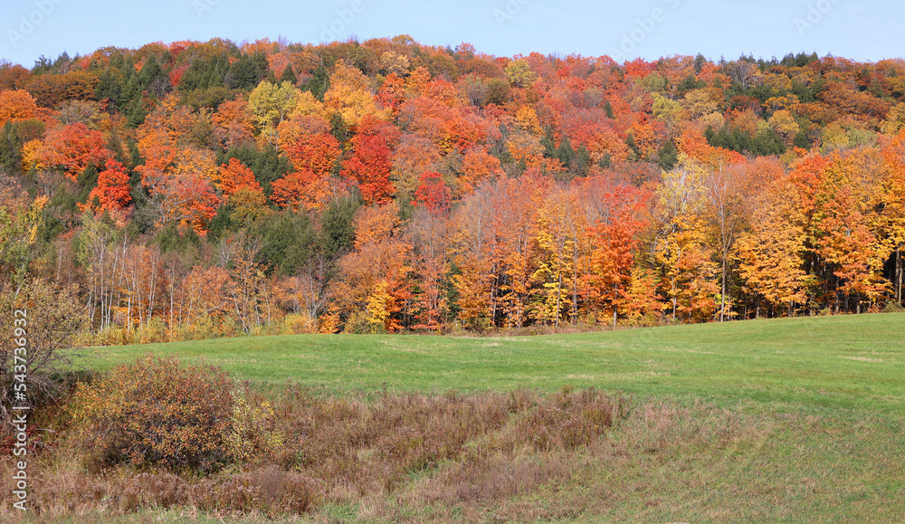 North america fall landscape eastern townships Bromont Quebec province Canada