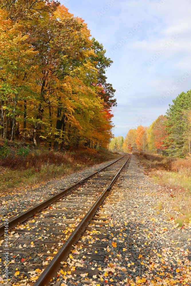 Tracks in fall landscape eastern townships Bromont Quebec province Canada