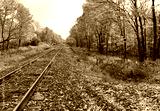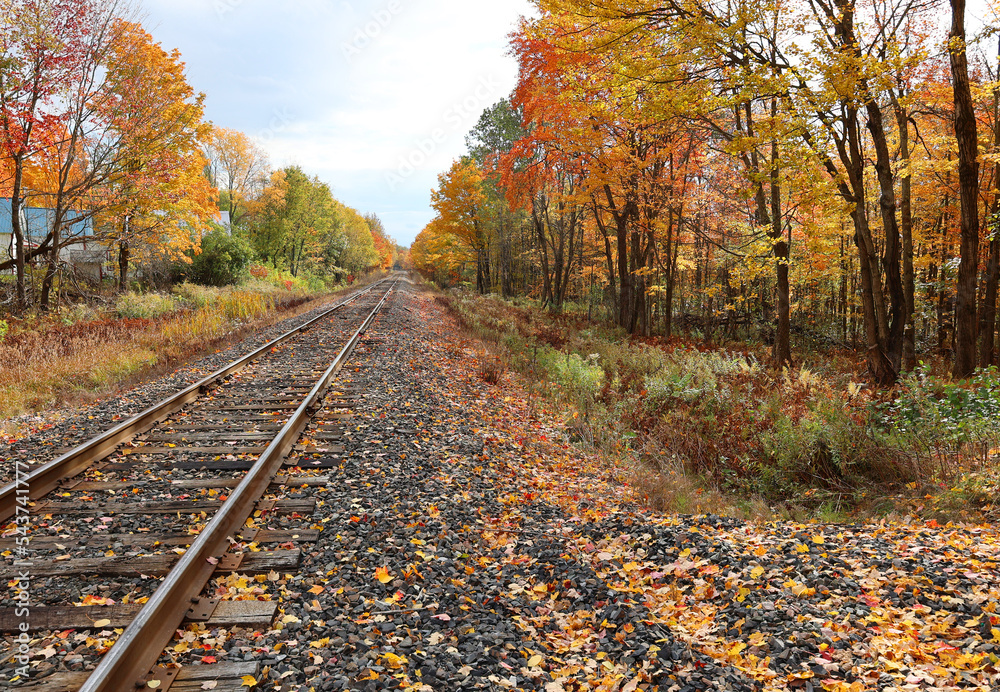 Tracks in fall landscape eastern townships Bromont Quebec province Canada