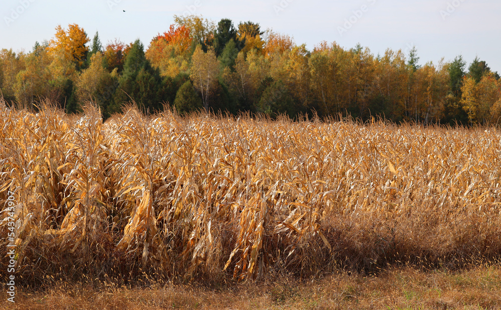 Corn field farm in fall season in Bromont Quebec Canada