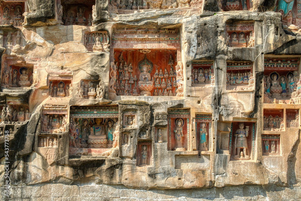 Details of Nankan grotto in Bazhong, Sichuan, China.