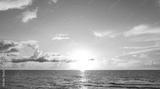 Cloudy sky on sea sunset, sunrise on ocean beach. Sunset landscape in the sky after sunset. Sunrise with clouds of different colors against the sky and sea.