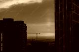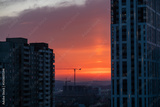 beautiful sunset in the city among the houses