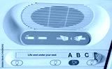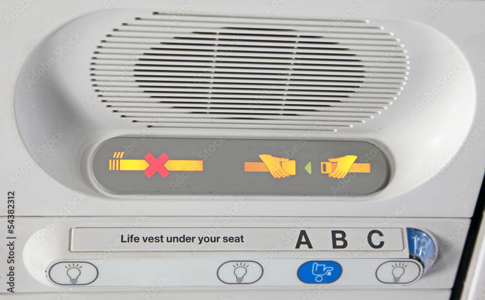 Airplane cabin panel with seatbelt and no smoking safety signs