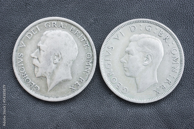 Half crown, George V (1920), George VI (1946).