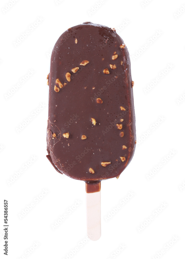 Chocolate-coated blocks of ice cream on stick.