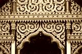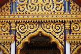 Vintage Golden Thai Traditional Sculpture in front of Buddhist Church.