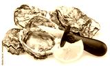 Opened and closed raw oysters isolated on white background. Delicacy food.