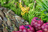 Green bananas for sale at big food market of Dambulla, Sri Lanka.