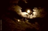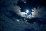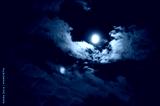 雲の合間に輝く月光の夜景