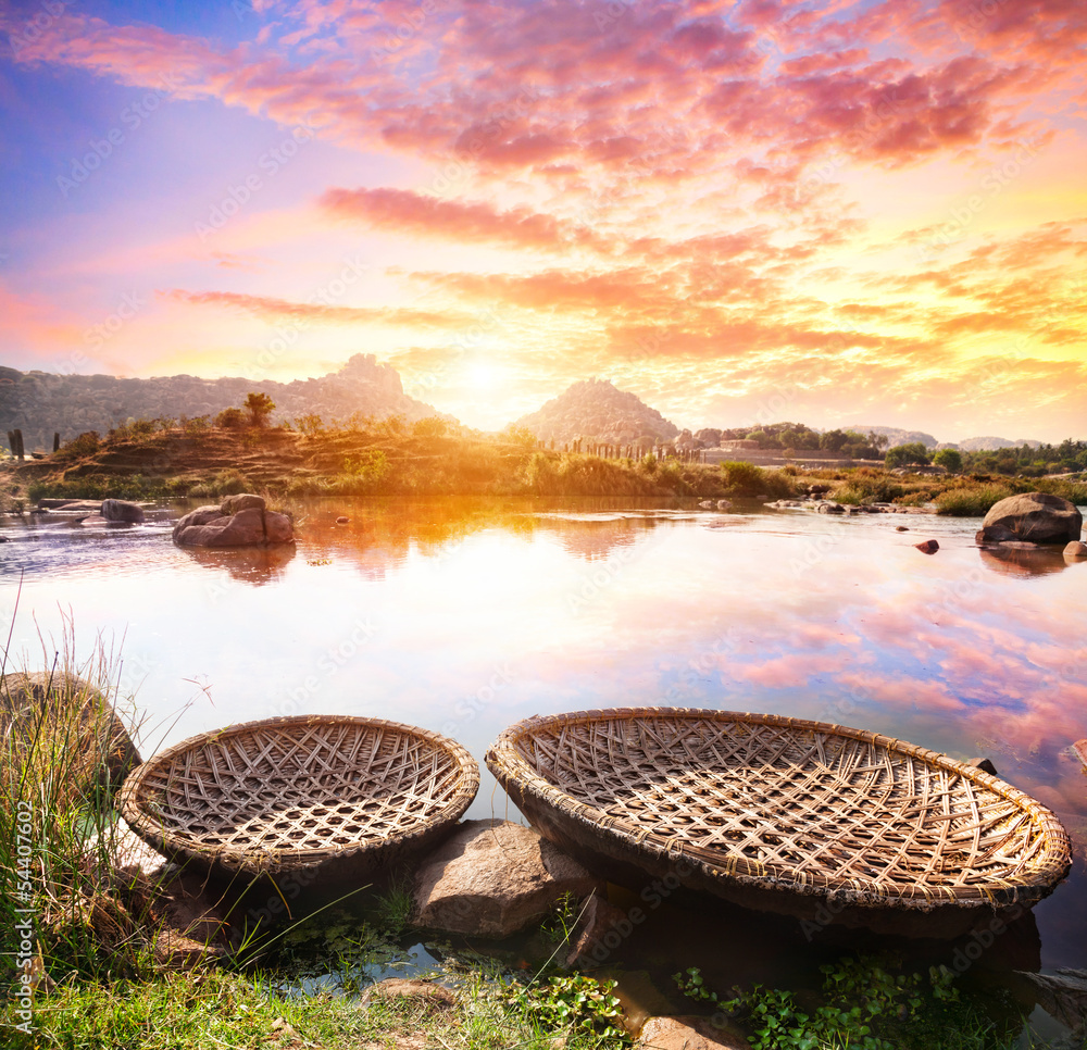 Boats near Hampi river