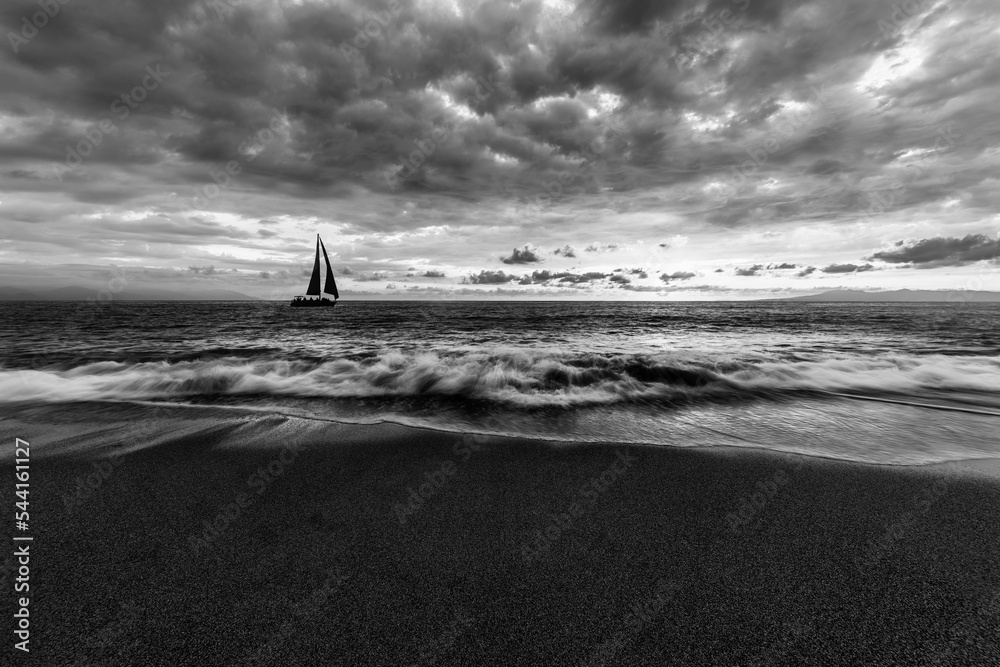 Sunset Sailboat Ocean Sail Boat Landscape Black And White High Resolution