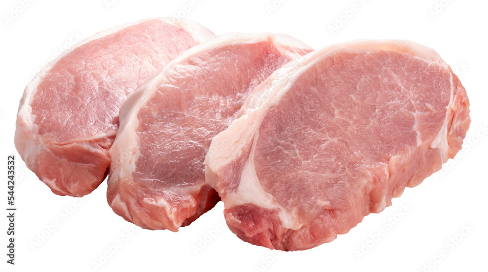 Fillet of pork isolated on white background, Slide Pork tenderloin on white background PNG File.