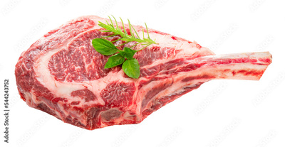 Raw Tomahawk beef steak on white background, Tomahawk beef steak on white PNG File.