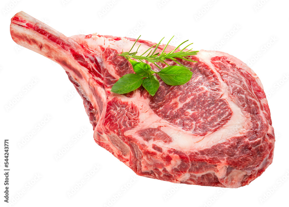 Raw Tomahawk beef steak on white background, Tomahawk beef steak on white PNG File.