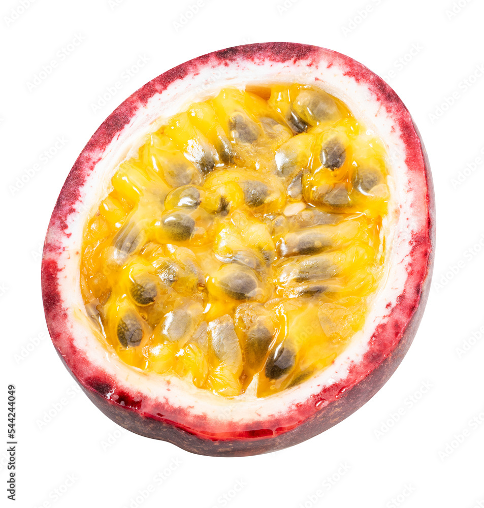 Fresh Passion fruit with leaves on white, Purple Passion fruit or Maracuya on white background PNG File.