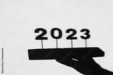 Christmas abstract background with numbers 2023. Shadow and geometric lines, with the date of the upcoming New Year.