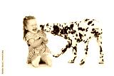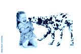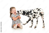 child girl playing with dog