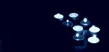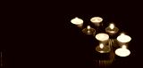 Set of candles lightening on dark table background
