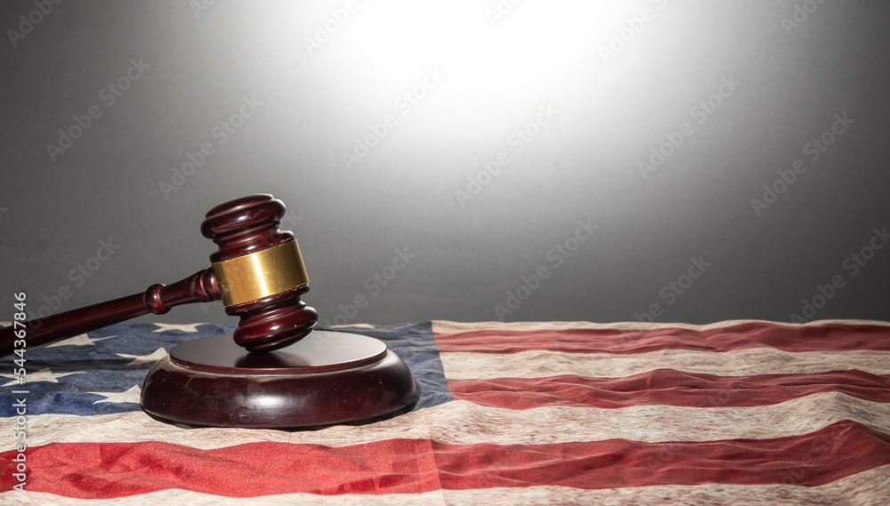 Judge gavel on United States flag with clear background - justice concept