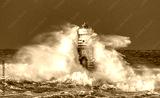 The lighthouse of the mangarche of calasetta in southern sardinia submerged by the waves of a stormy sea