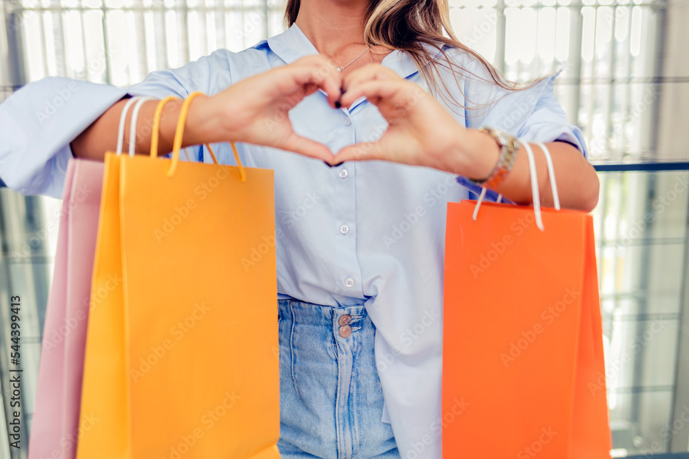 Cropped shot of a beautiful young woman creating a heart shape with her hand while shopping.