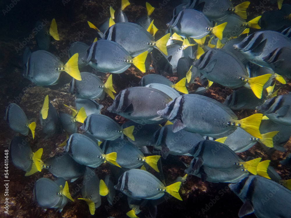 school of Razor Surgeonfish, Puerto Egas, Santiago Island, Galapagos