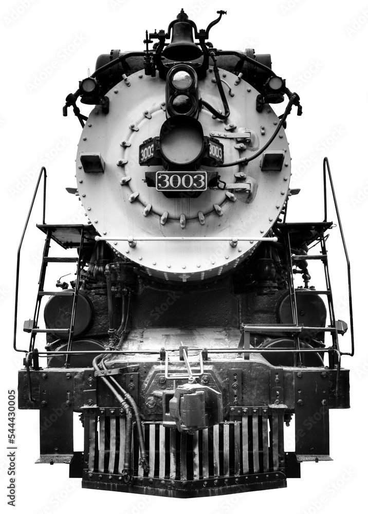 Transportation in the industrial age. Steam locomotive isolated on transparent background.