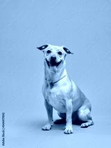 portrait of a beautiful dog lilac background. Mix of breeds. Sweet Pet in the studio