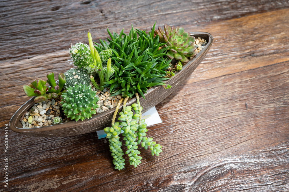 Various of cactus and succulent planting in a tray for making miniature garden. A miniature garden is literally a living garden in miniature.