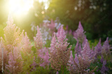 Flower astilba paniculate.Astilba flowers in the rays of sunlight at sunset.