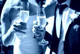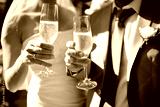 Bride and groom making a toast with champagne