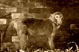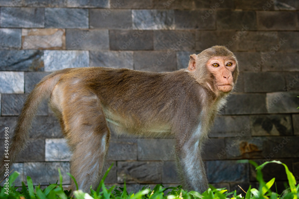 Mono salvaje en cuatro patas mirando a cámara