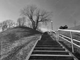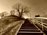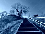 Stairway steps to the park and clear blue sky.