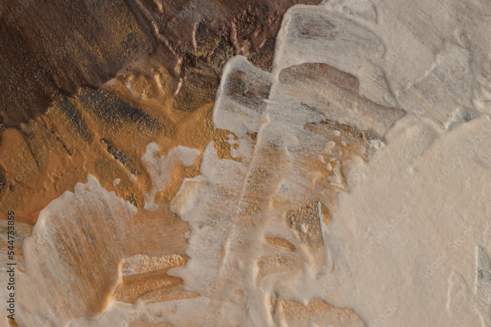Art modern oil and Acrylic smear blot painting wall. Abstract texture beige, gold, bronze color stain brushstroke background.