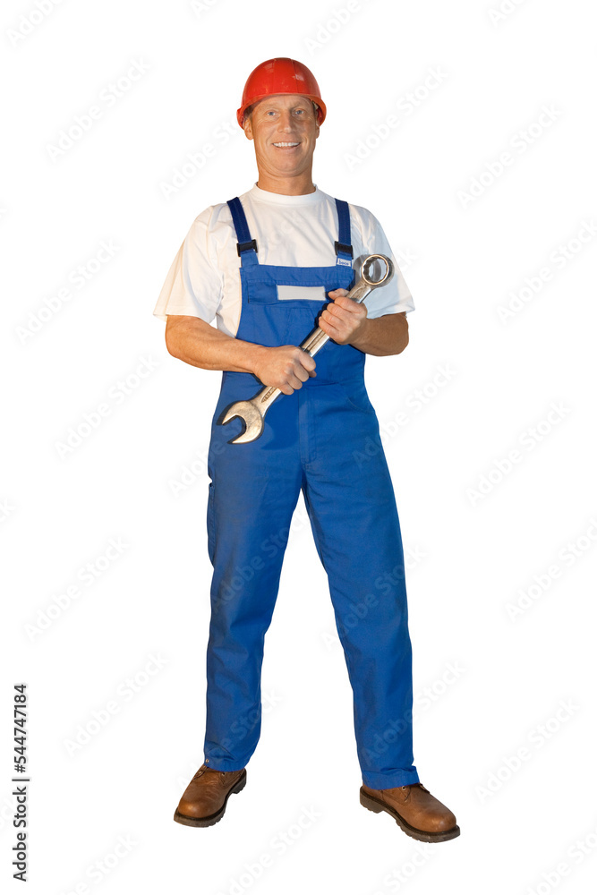 Craftsman series: sympathetic craftsman holding a large spanner.
