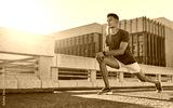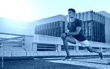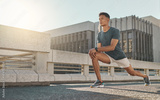 Fitness, exercise and man stretching in city before running workout, motivation and sports lifestyle. Training, runner on city street and stretch before an outdoor cardio for healthy body and mindset