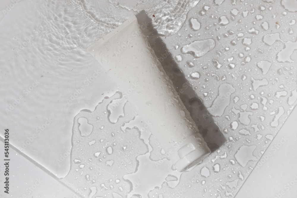 mockup tube bottle for skin care cosmetic with water splash, product branding, serum dropper cream lotion treatment